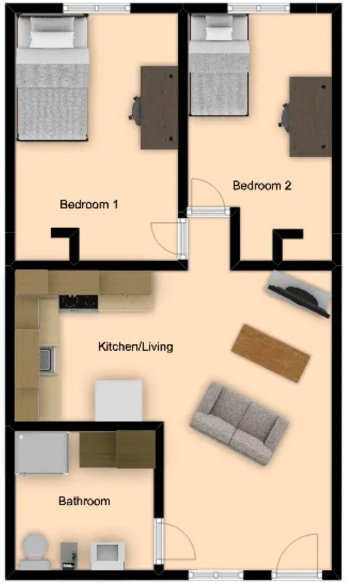 Two bedrooms — one larger, one smaller, ideal for roommates or extra study space!